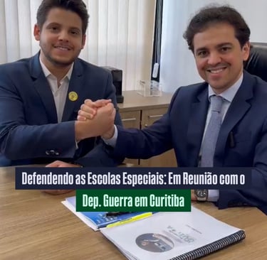 Em agenda dedicada à educação inclusiva, o vereador Giovani Mattos esteve reunido com o deputado estadual Luiz Fernando Guerra para tratar da manutenção das escolas especiais em Londrina. O encontro teve como foco o fortalecimento dessas instituições, que desempenham um papel essencial no atendimento a crianças, adolescentes e adultos com deficiência.